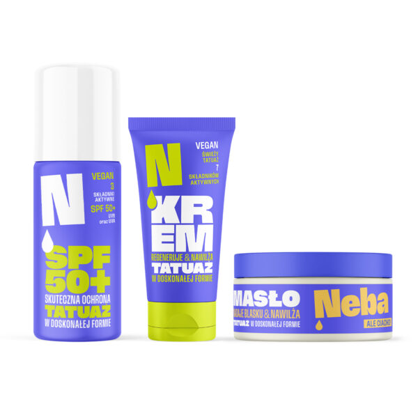 Krem Neba® zapewni Twojej skórze pielęgnację na najwyższym poziomie – skóra będzie nawilżona i delikatnie natłuszczona a podrażnienia złagodzone. Dzięki systematycznemu stosowaniu wzmocni intensywność koloru tatuażu i ochroni przed blaknięciem. To idealnie wsparcie w pielęgnacji zarówno świeżego jak i zagojonego tatuażu.